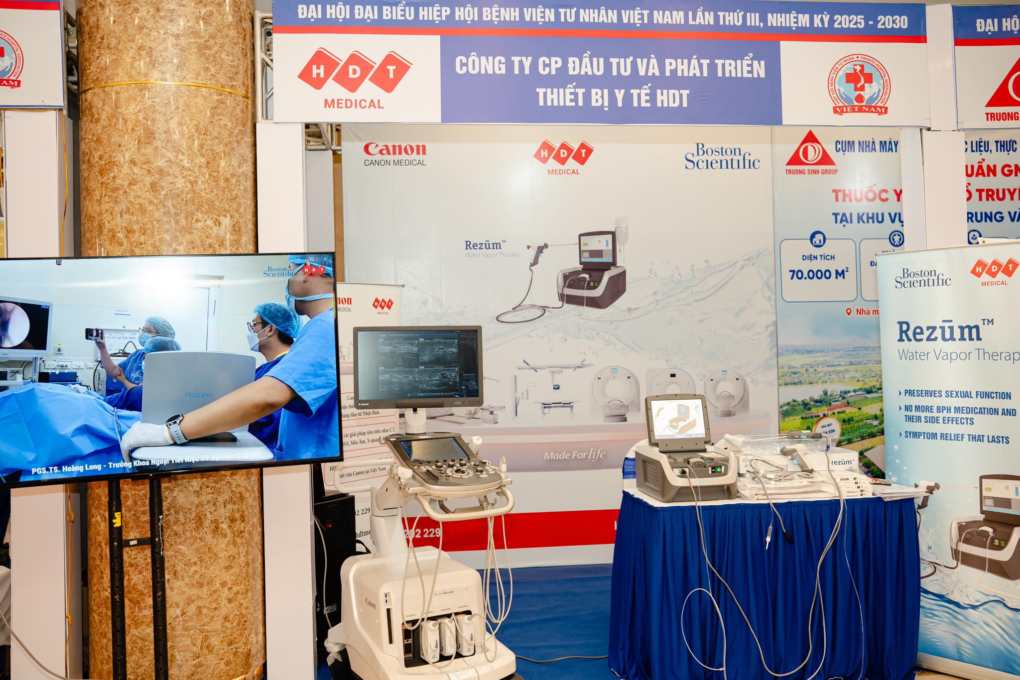 Tại Đại hội, HDT Medical mang đến giải pháp liệu pháp nhiệt hơi nước Rezum – công nghệ tiên tiến hỗ trợ điều trị tăng sinh tuyến tiền liệt, mang lại hiệu quả cao và ít xâm lấn cũng như các thiết bị tiên tiến đột phá đến từ Canon Medical.