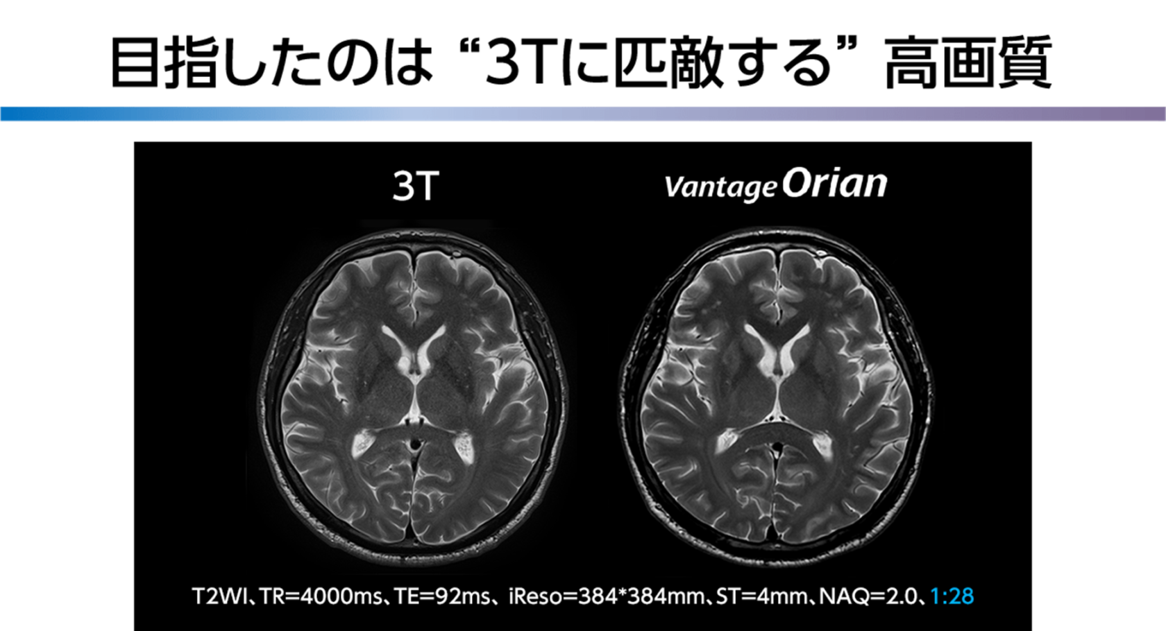 Vantage Orian hướng đến chất lượng hình ảnh cao như 3 Tesla với công nghệ cải tiến SNR “Công cụ Clear-IQ thông minh tiên tiến (AiCE)” được thiết kế bằng cách sử dụng máy học sâu. Hơn nữa, bằng cách kết hợp các ứng dụng tốc độ cao như “NÉN TỐC ĐỘ”, chất lượng hình ảnh cao có thể đạt được mà không làm giảm tốc độ cao.