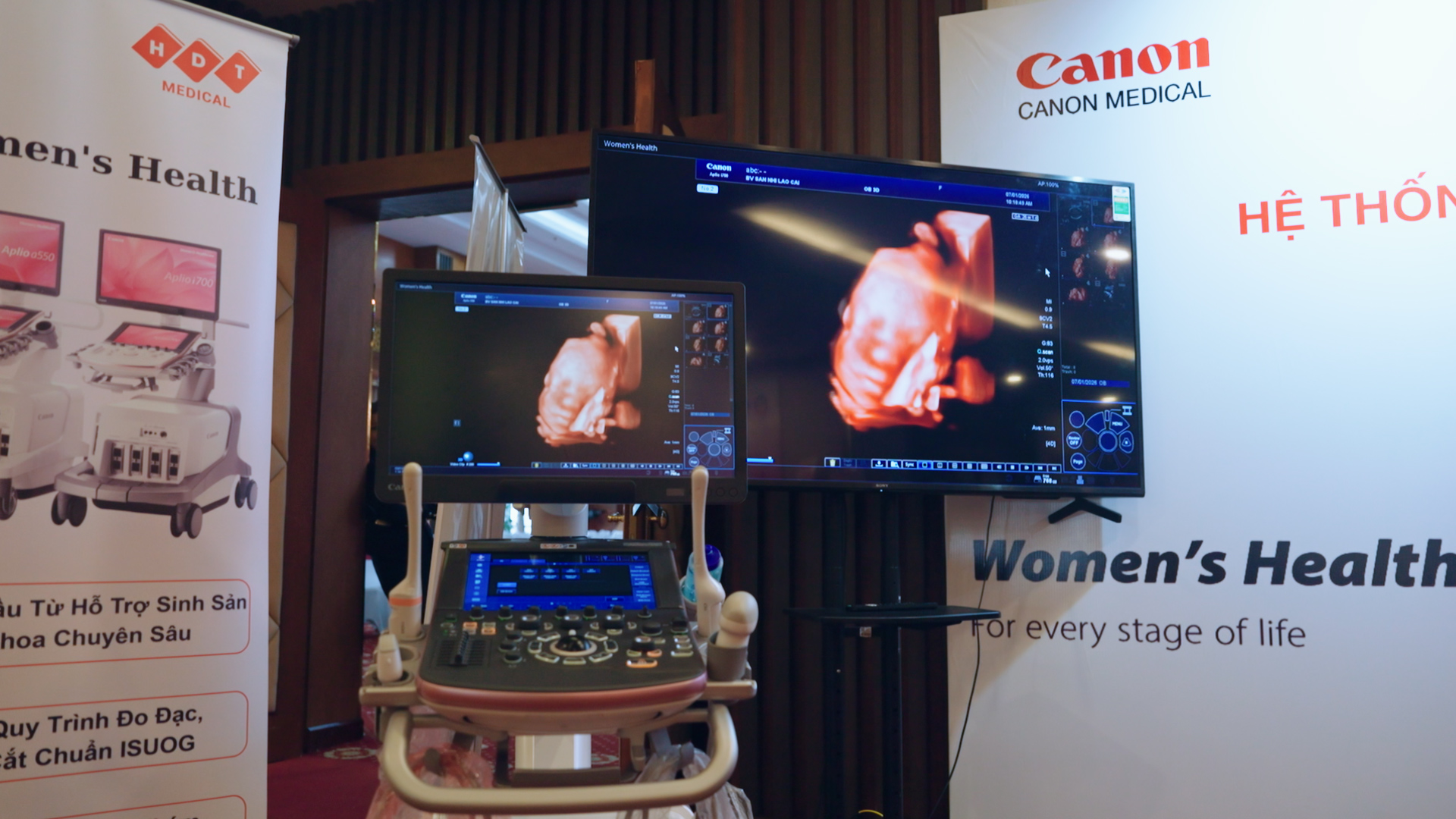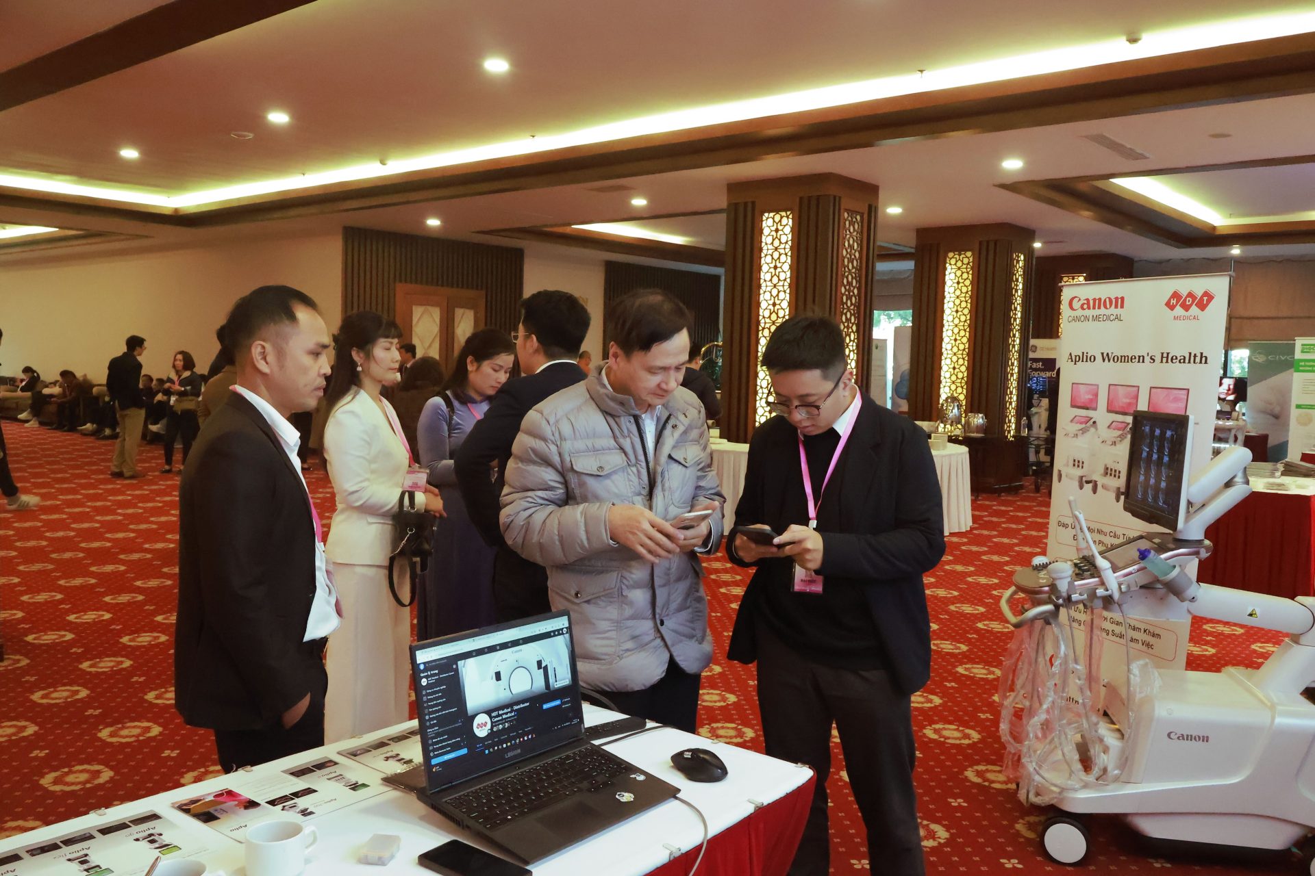 Trong khuôn khổ hội thảo, gian hàng trưng bày của Canon Medical và HDT Medical đã đón tiếp nhiều đại biểu, bác sĩ đến tham quan, trao đổi và tìm hiểu các giải pháp y tế hiện đại. Các công nghệ tiên tiến được giới thiệu tại sự kiện hướng tới hỗ trợ hiệu quả cho công tác lâm sàng, đặc biệt trong lĩnh vực sản – phụ khoa và hỗ trợ sinh sản.